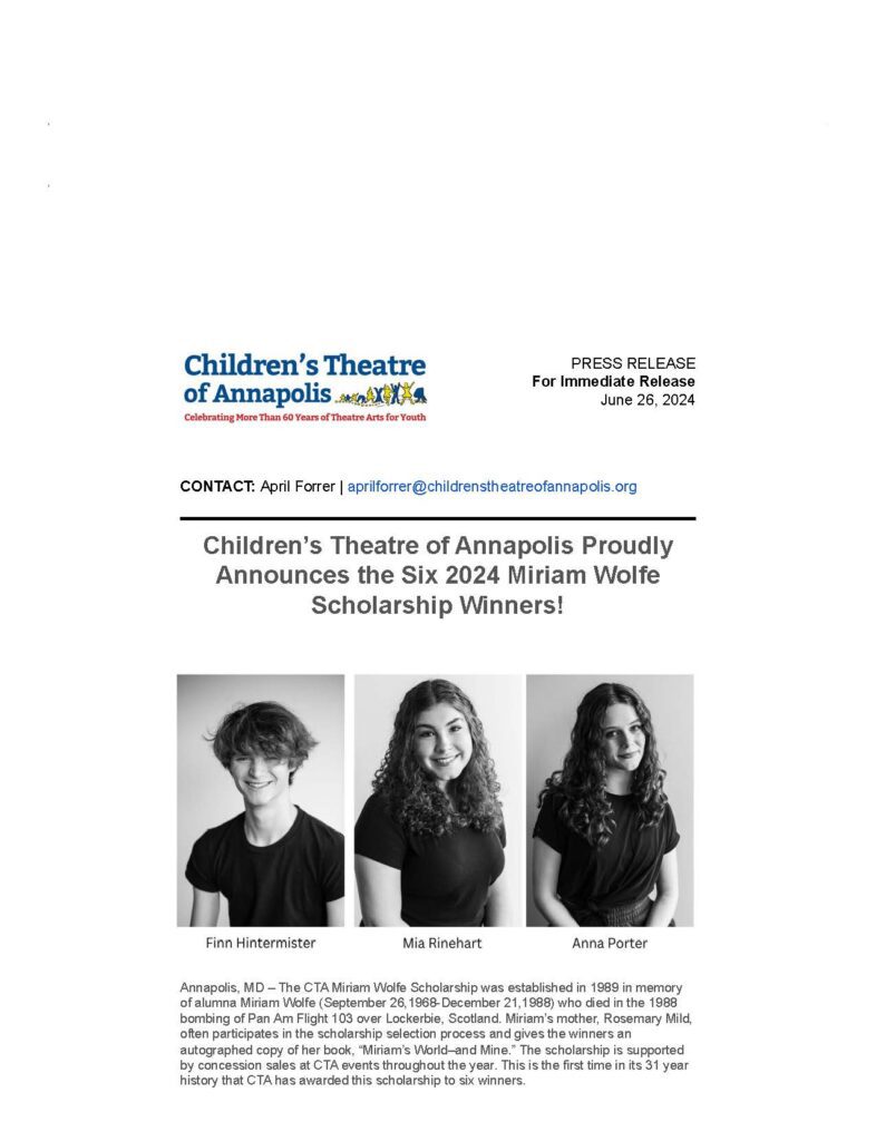 0 comments on “CTA Announces the Six Miriam Wolfe Scholarship Winners for 2024!”